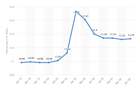 Real Average Hourly Earnings went down in April 2020 and the rate hasn't recovered yet. This too, will impact rents. It's customary to assume a 2%-3% annual rent increase in residential real estate business plans. For the properties we bought this year, we figured 0% rent increase…